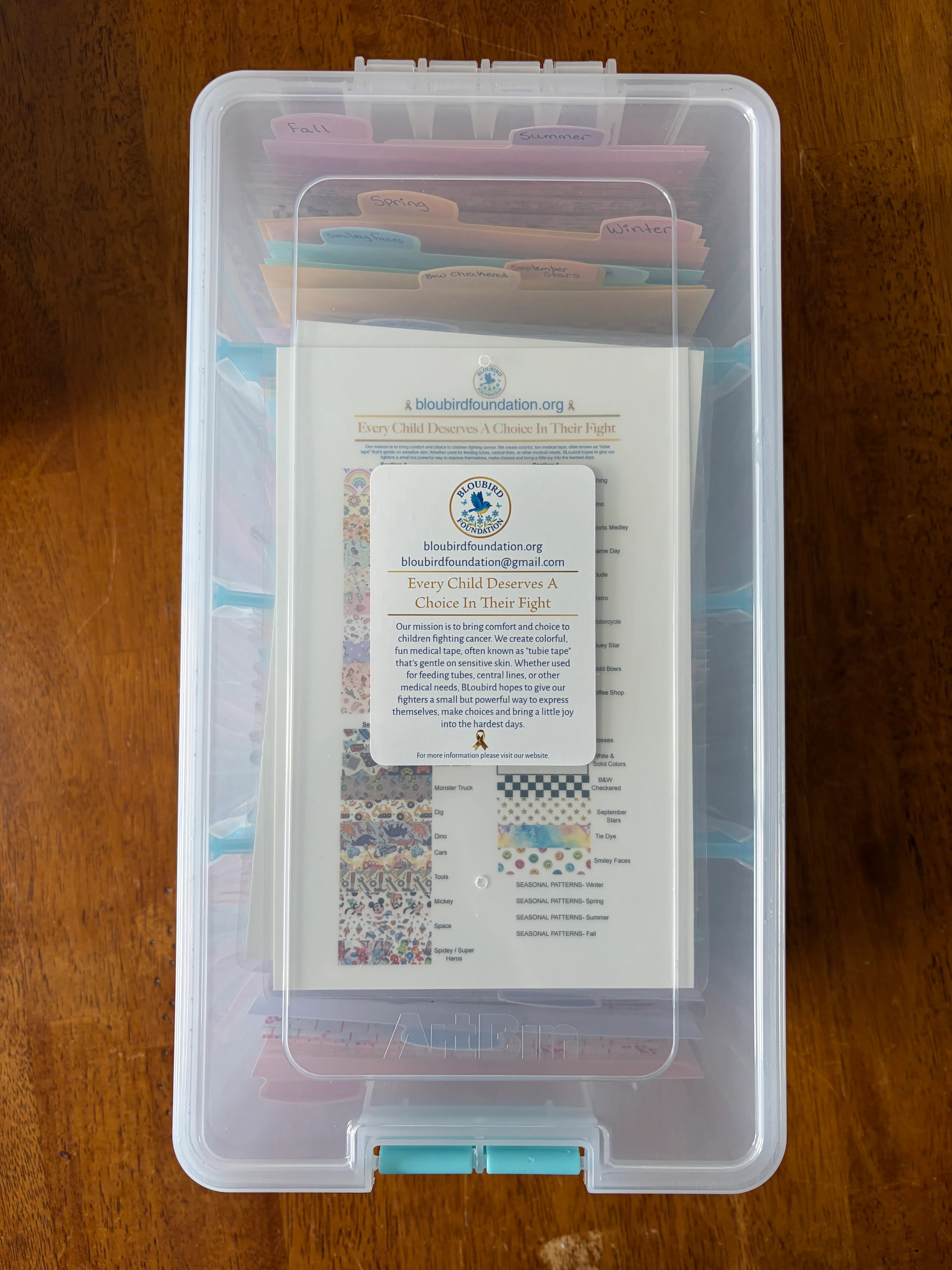 Each set of Boxes includes a laminated Tape Guide mirroring the tape organization inside the Boxes.